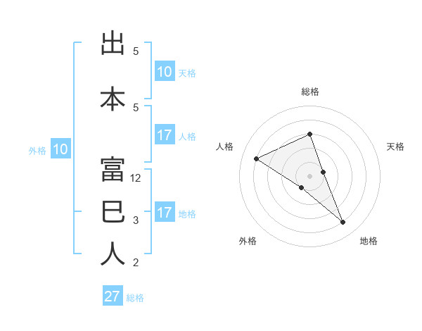出本 富巳人さんを姓名の画数から五運を鑑定