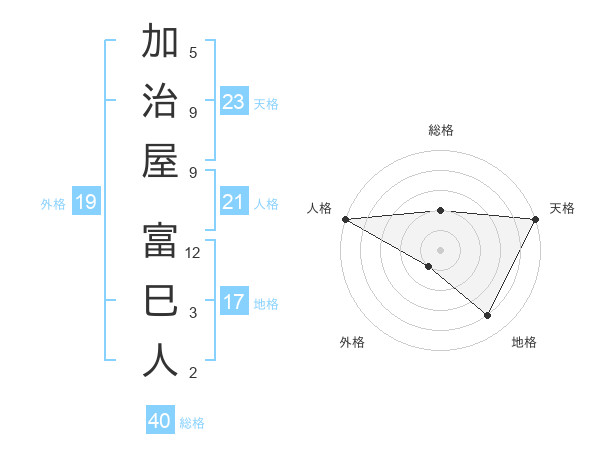 加治屋 富巳人さんの天格は23画の5点!