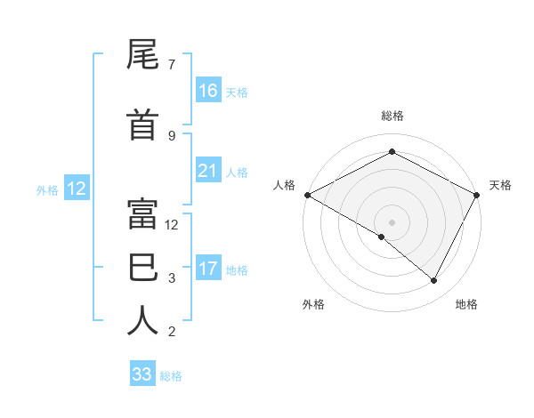 尾首 富巳人さんの総格は33画の4点!
