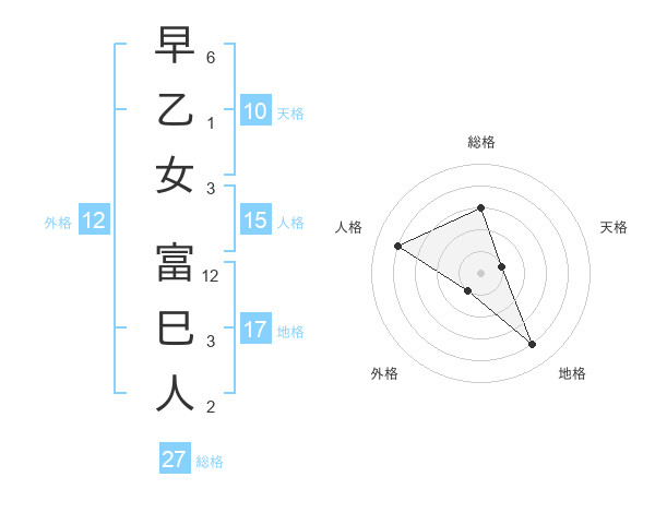 早乙女 富巳人さんを姓名の画数から五運を鑑定