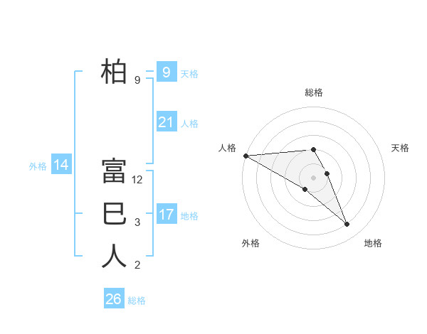 柏 富巳人さんを姓名の画数から五運を鑑定