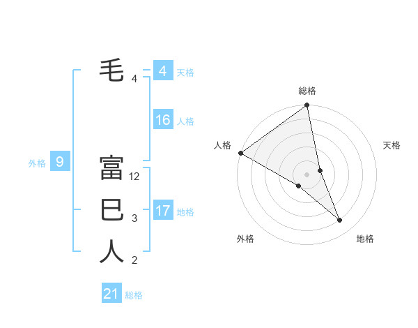 毛 富巳人さんの総格は21画の5点
