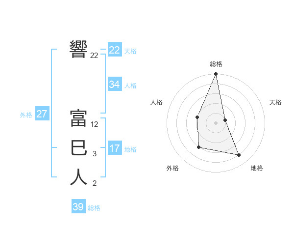 響 富巳人さんの外格は27画の3点!