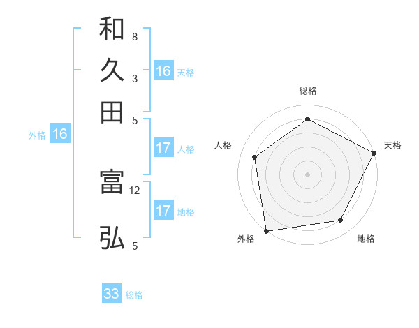 和久田 富弘さんを姓名の画数から五運を鑑定