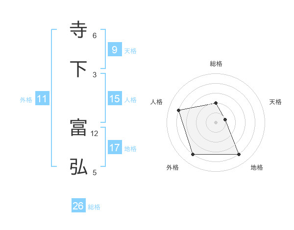 寺下 富弘さんの地格は17画の4点!