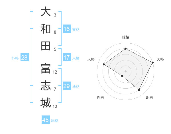 大和田 富志城さんを姓名の画数から五運を鑑定