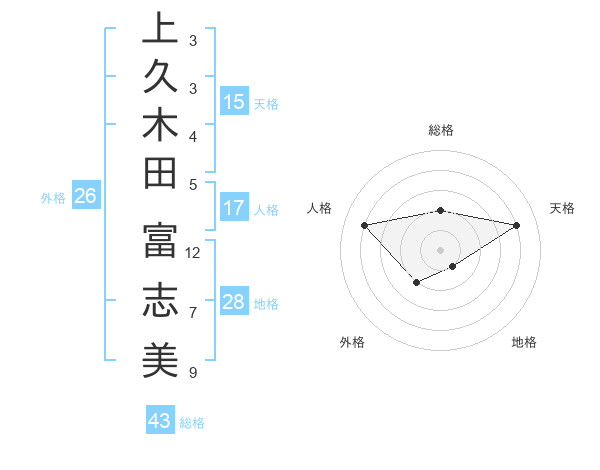上久木田 富志美さんを姓名の画数から五運を鑑定