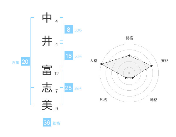 中井 富志美さんの天格は8画の4点!