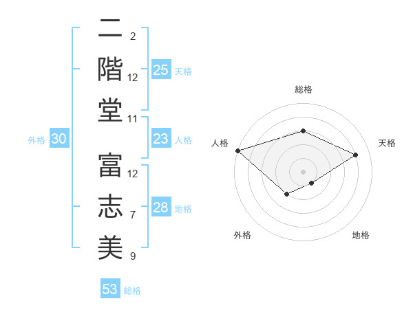 二階堂 富志美さんを姓名の画数から五運を鑑定