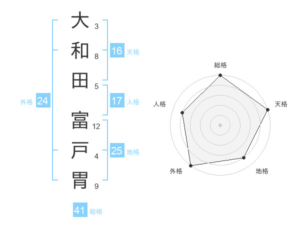 大和田 富戸胃さんを姓名の画数から五運を鑑定