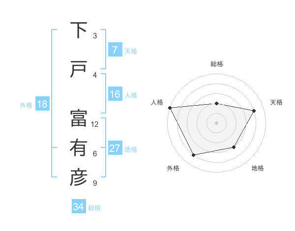 下戸 富有彦さんを姓名の画数から五運を鑑定