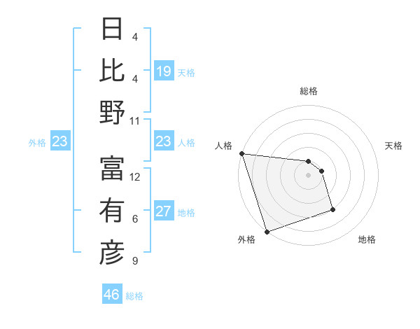 日比野 富有彦さんを姓名の画数から五運を鑑定