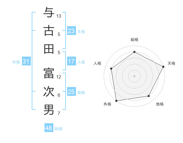 与古田 富次男さんを姓名の画数から五運を鑑定