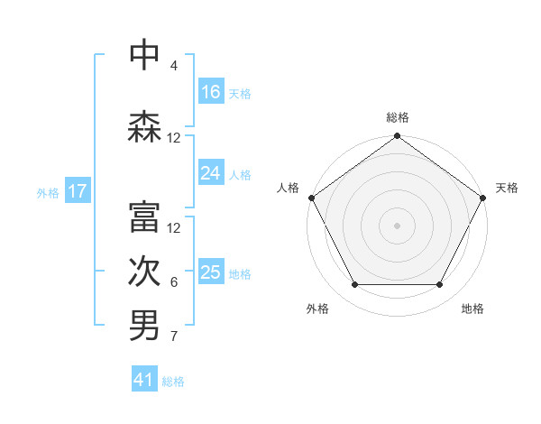 中森 富次男さんの総格は41画の5点!