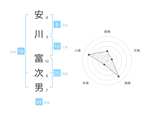安川 富次男さんの総格は34画の2点!