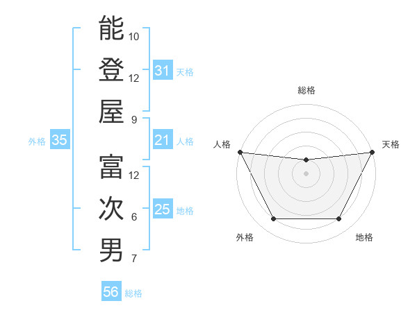 能登屋 富次男さんを姓名の画数から五運を鑑定