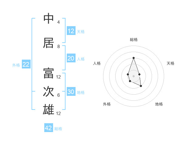 中居 富次雄さんを姓名の画数から五運を鑑定