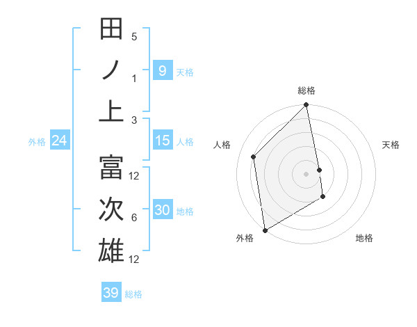 田ノ上 富次雄さんを姓名の画数から五運を鑑定
