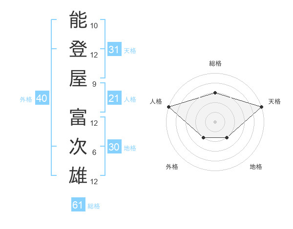 能登屋 富次雄さんの人格は21画の5点!