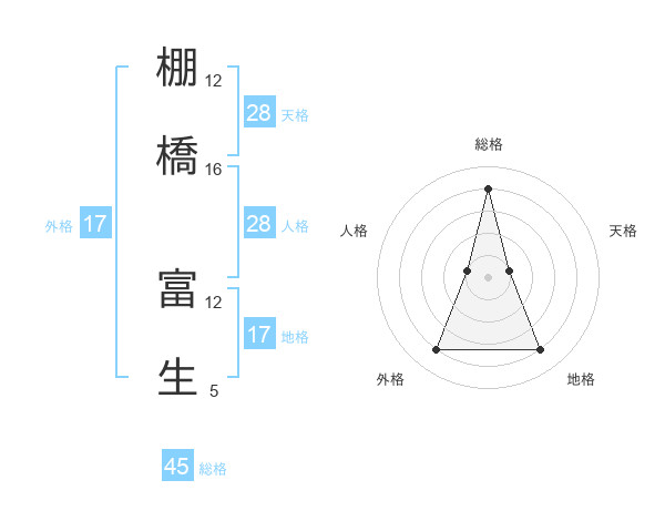 棚橋 富生さんの総格は45画の4点!