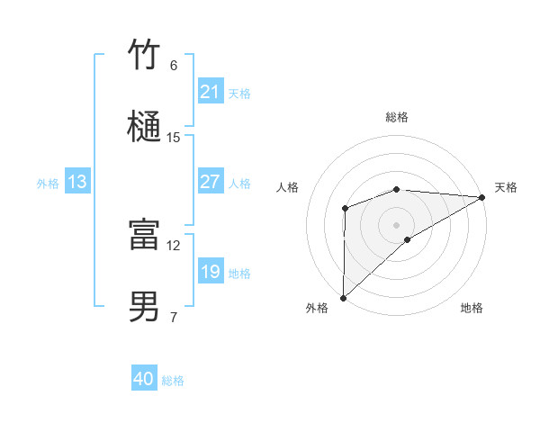竹樋 富男さんを姓名の画数から五運を鑑定