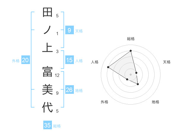 田ノ上 富美代さんを姓名の画数から五運を鑑定