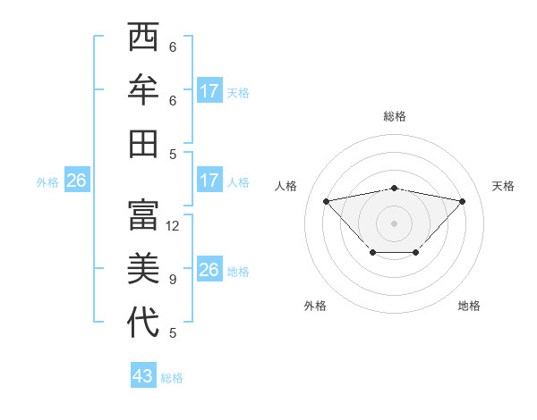 西牟田 富美代さんを姓名の画数から五運を鑑定