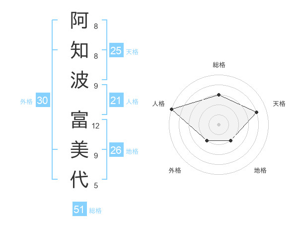 阿知波 富美代さんを姓名の画数から五運を鑑定