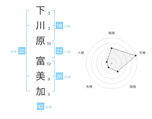 下川原 富美加さんの総格は42画の3点