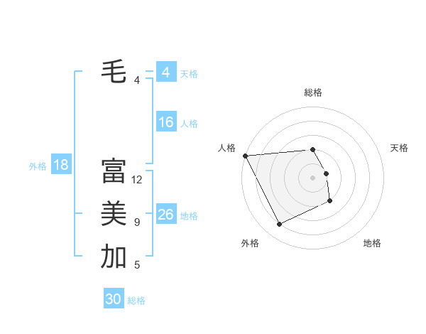 毛 富美加さんの外格は18画の4点!