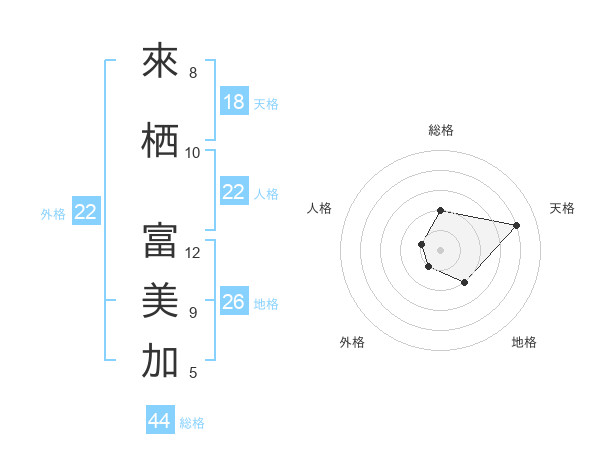 來栖 富美加さんの総格は44画の2点!
