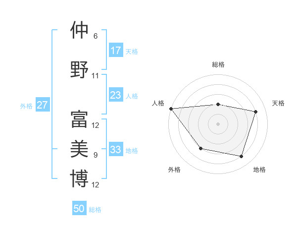 仲野 富美博さんの総格は50画の2点!