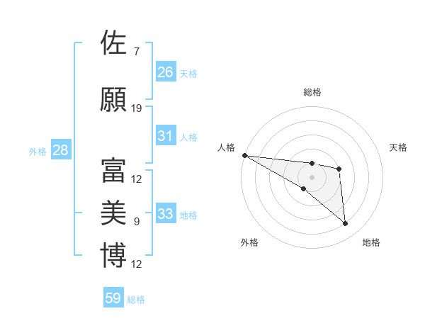 佐願 富美博さんを姓名の画数から五運を鑑定