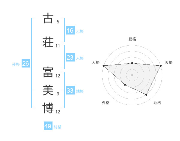 古荘 富美博さんを姓名の画数から五運を鑑定