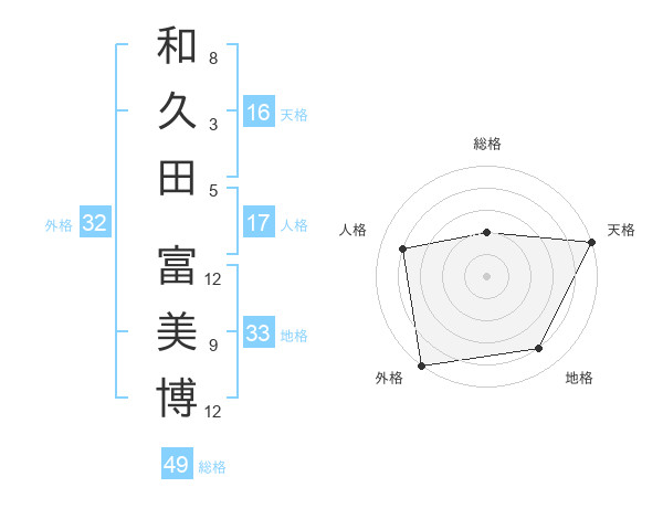 和久田 富美博さんを姓名の画数から五運を鑑定