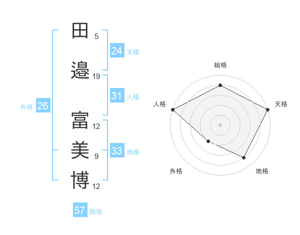 田邉 富美博さんを姓名の画数から五運を鑑定