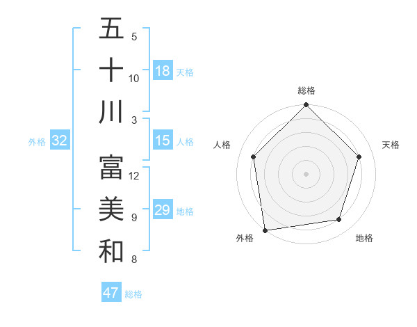 五十川 富美和さんを姓名の画数から五運を鑑定
