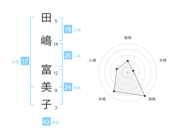田嶋 富美子さんを姓名の画数から五運を鑑定