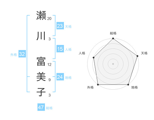 瀬川 富美子さんを姓名の画数から五運を鑑定