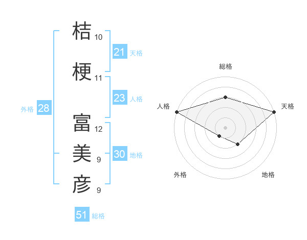 桔梗 富美彦さんを姓名の画数から五運を鑑定