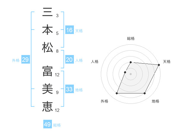 三本松 富美恵さんを姓名の画数から五運を鑑定