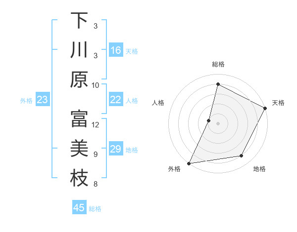 下川原 富美枝さんを姓名の画数から五運を鑑定