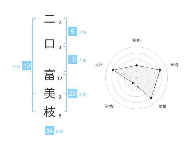二口 富美枝さんを姓名の画数から五運を鑑定