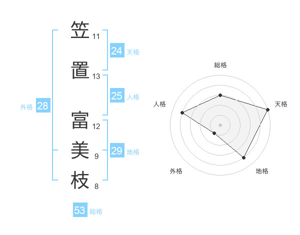 笠置 富美枝さんを姓名の画数から五運を鑑定