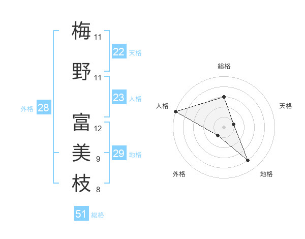 梅野 富美枝さんの総格は51画の3点!