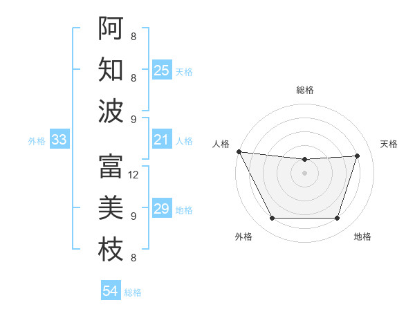 阿知波 富美枝さんを姓名の画数から五運を鑑定