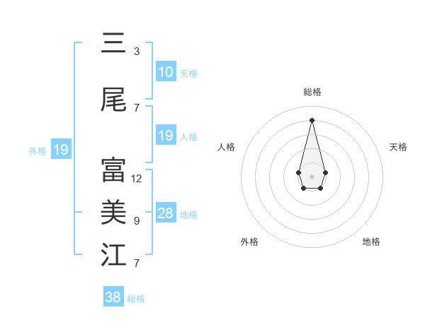 三尾 富美江さんを姓名の画数から五運を鑑定