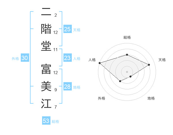 二階堂 富美江さんの総格は53画の3点!