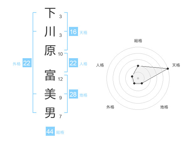 下川原 富美男さんの総格は44画の2点!