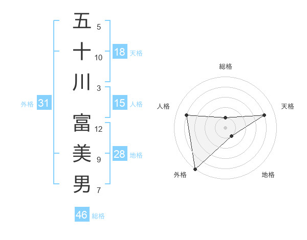 五十川 富美男さんを姓名の画数から五運を鑑定
